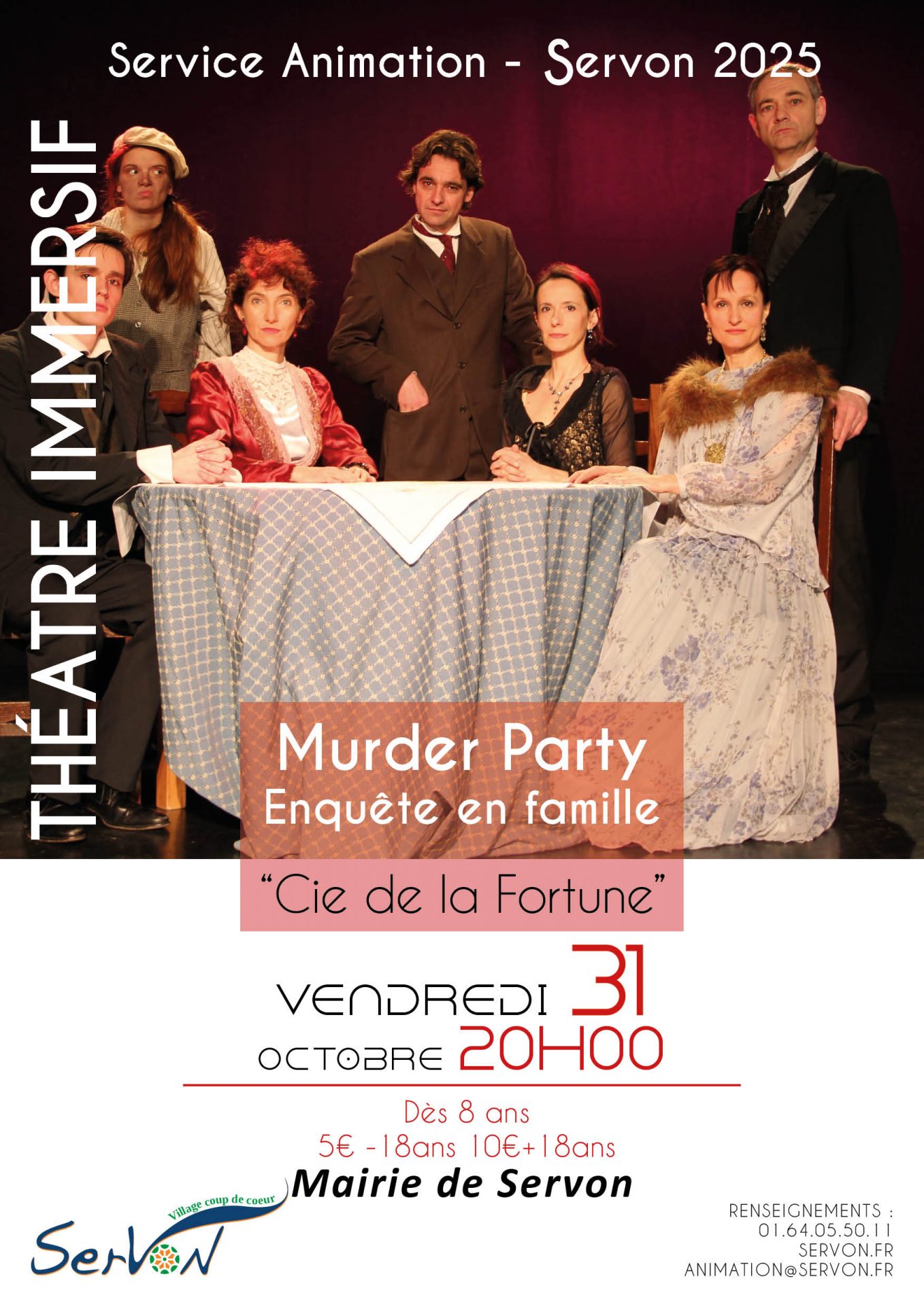 Après le succès de la 1ère édition de la Murder Party, ne manquez pas cette nouvelle soirée immersive à Servon. Venez passez Halloween en compagnie de nos hôtes dans l’univers des romans policiers et résoudre une enquête particulièrement troublante… nous avons besoin de vous ! DRESS CODE conseillé : années 1900 Tarifs : 10€ +